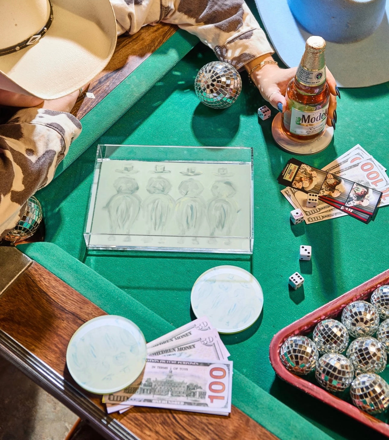 Add a little yeehaw to your everyday! This petite acrylic tray features Emma Katherine’s signature western artwork, packed with color, charm, and a dash of southern sass. Perfect for jewelry, keys, or your favorite cocktail napkins, it’s a small but mighty statement piece that brings a playful pop of the Wild West to any space.