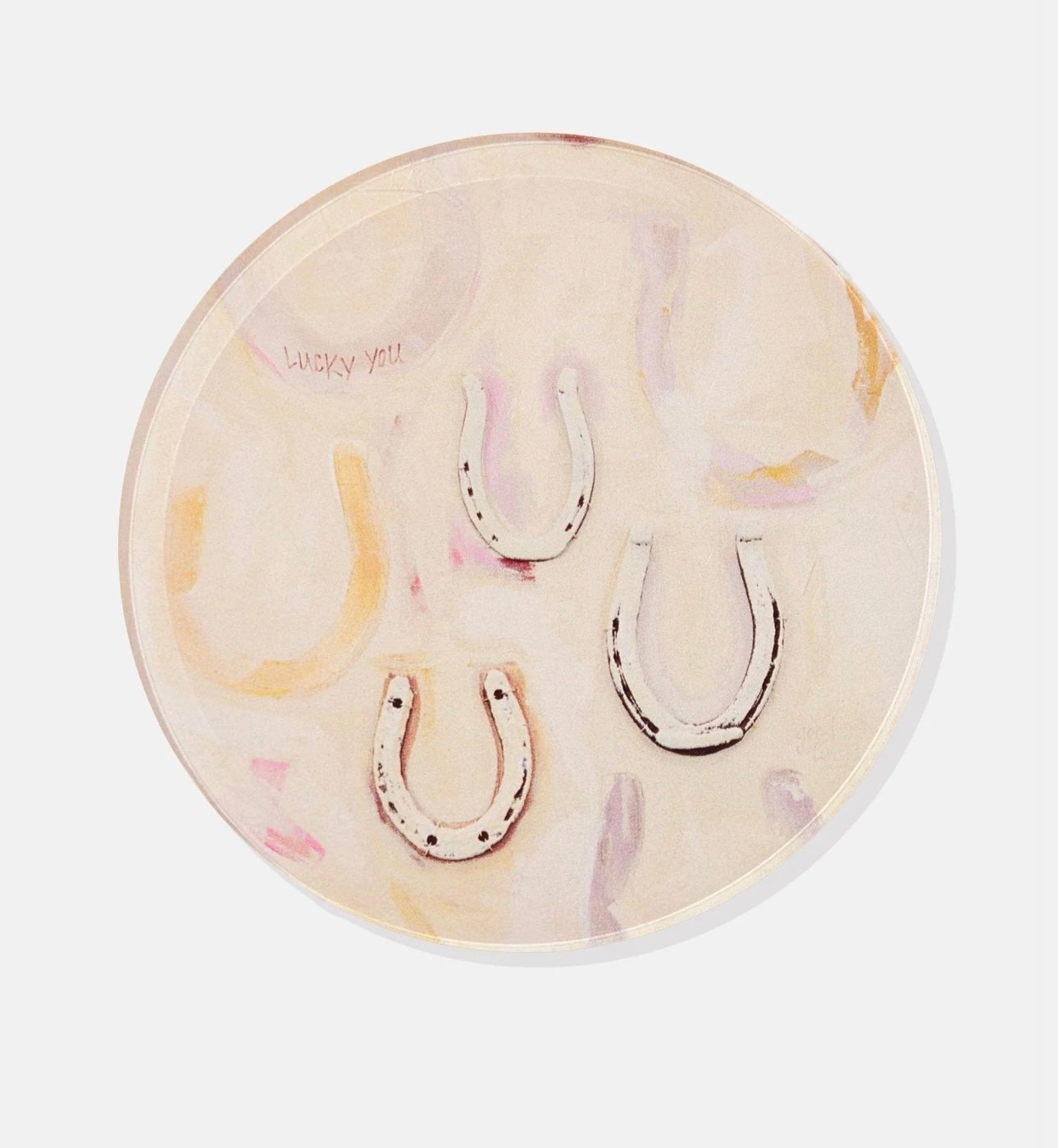 Kick up a little color, cowgirl! This acrylic coaster features Emma Katherine’s vibrant western artwork, blending bold hues and playful charm straight from the wild, wild Tart. Perfect for your bar cart, coffee table, or next girls’ night in, these coasters protect your surfaces while adding a dose of southern flair.