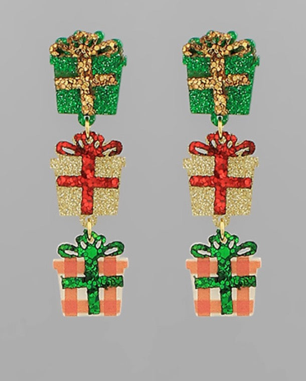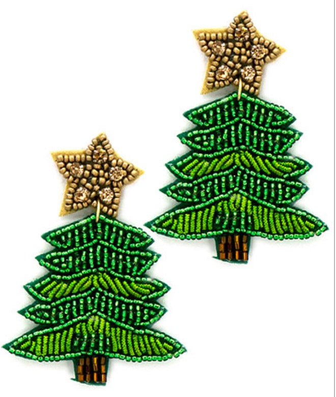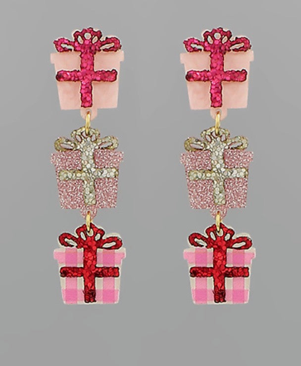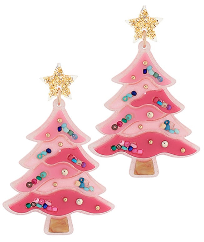 PINK ACRYLIC CHRISTMAS TREE EARRINGS