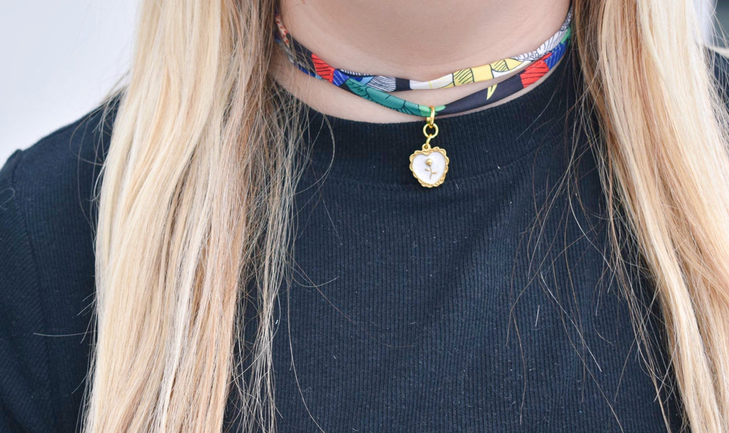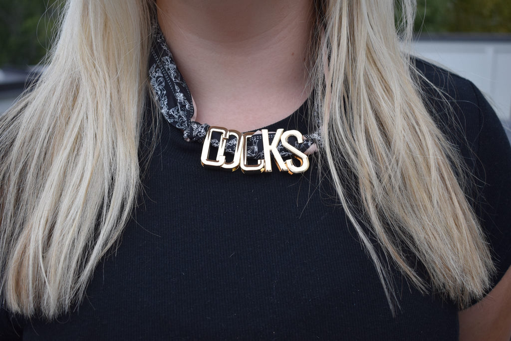 BLACK PRINTED COCKS SCARF NECKLACE